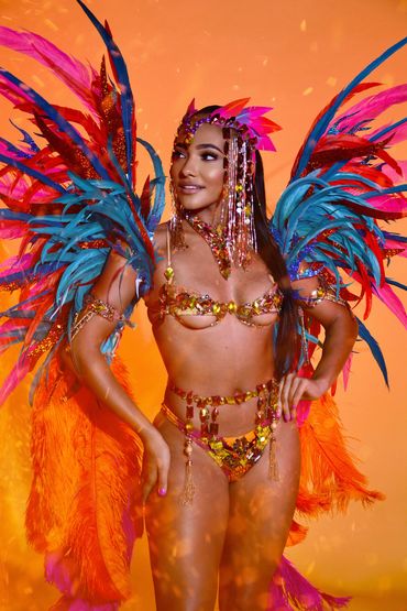 We produce high quality carnival costumes in the United States. Quality and speed is our goal when it comes to serving your consumers. Our facility is equipped to handle all of your carnival needs. We can bend frames and wire bras, feathering, gemming, custom trims and gems, or source materials for your needs. Our team has extensive knowledge in production and costume design. We are a one stop facility!